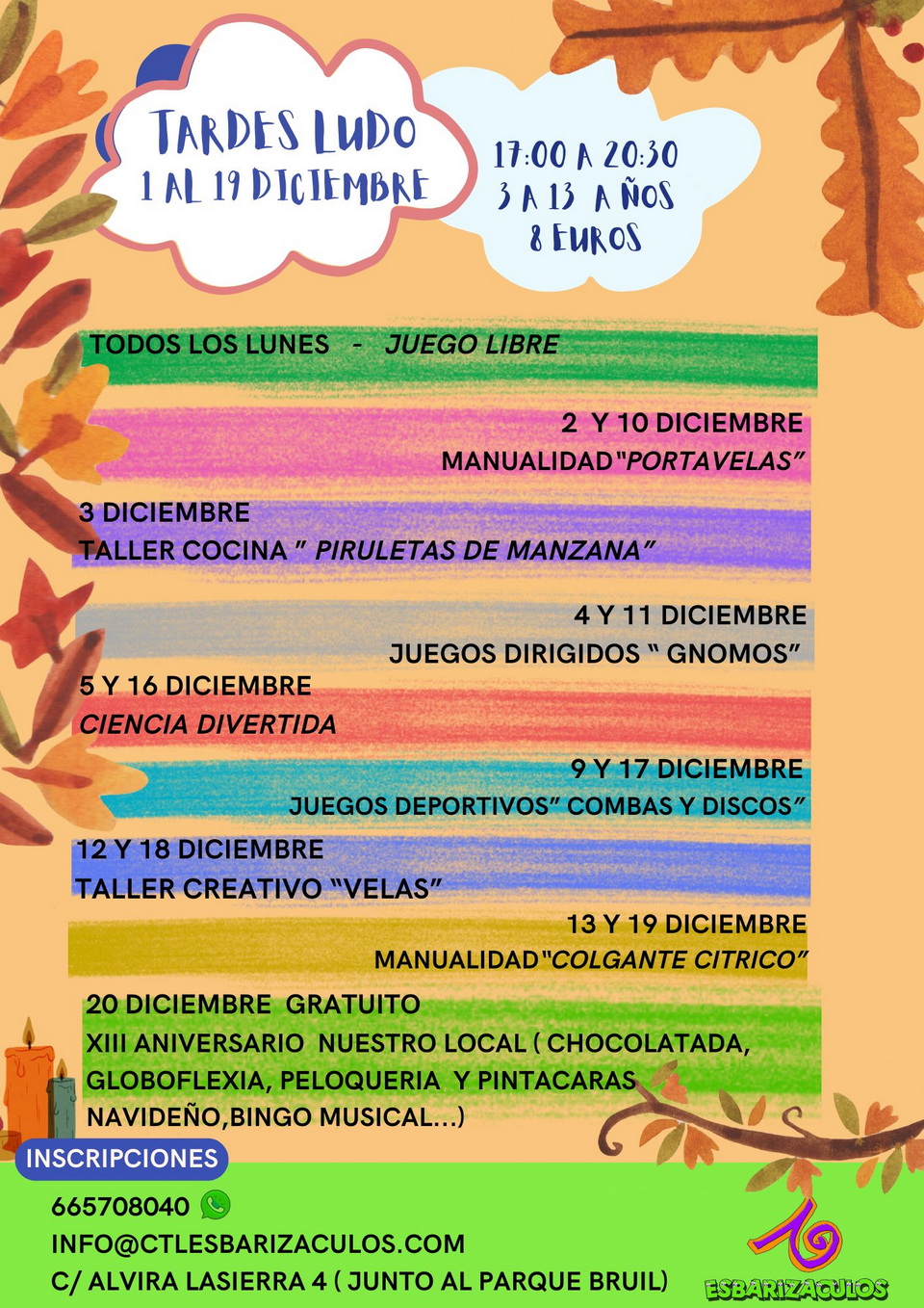 Esbarizaculos es una empresa familiar con más de 20 años de experiencia en el sector de la infancia y tiempo libre. Un espacio seguro, alegre y centrado en los menores, donde ell@s son los protagonistas.